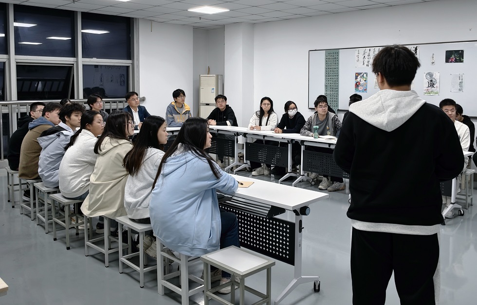 汇报环节,班长叶雨焱代表班级对过去两年所取得的成绩进行了汇报。同学代表分别从学习经验、科研训练、学科竞赛和志愿服务等方面,展示了个人取得的成绩与心得体会,并就未来个人发展规划进行交流。