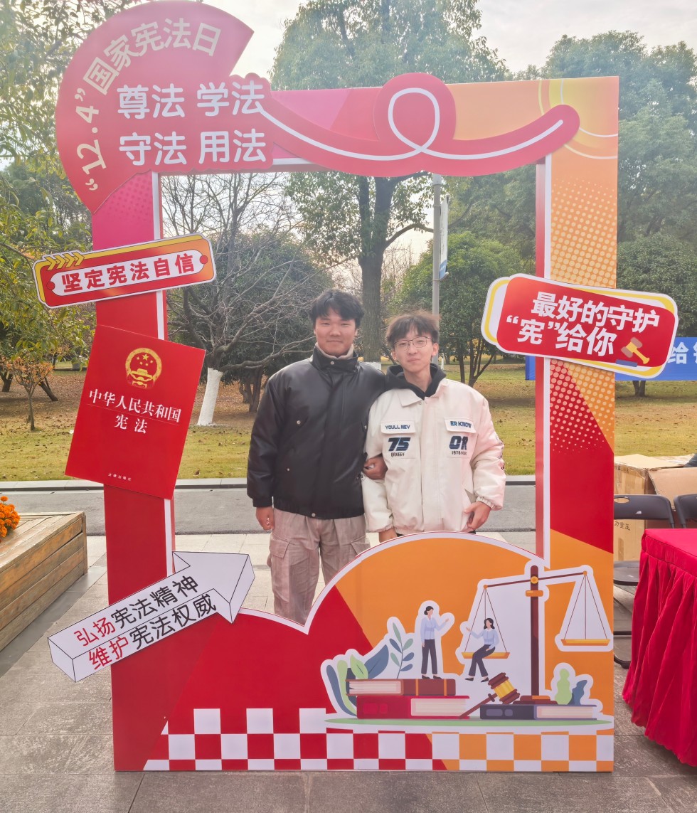 12月4日清晨,宪法晨读活动启动。学子们齐声诵读宪法条文,以庄重的形式表达对宪法权威的敬畏与践行宪法精神的决心。上午,学生在逸夫楼323教室集中收看教育部“宪法晨读”学习教育直播。通过权威解读与典型案例学习,学子们深刻领会宪法核心要义,明确宪法作为国家根本大法的重要意义,进一步筑牢法治思想根基。直播结束后,在图书馆门口参加学校组织的主题宣传活动。活动设置“宪法知识大转盘”“幸运盲盒”等互动环节,将法律知识与趣味形式相结合,配合宣传资料发放、法律咨询解答,有效激发学生学法热情,推动法治观念深入人心。
