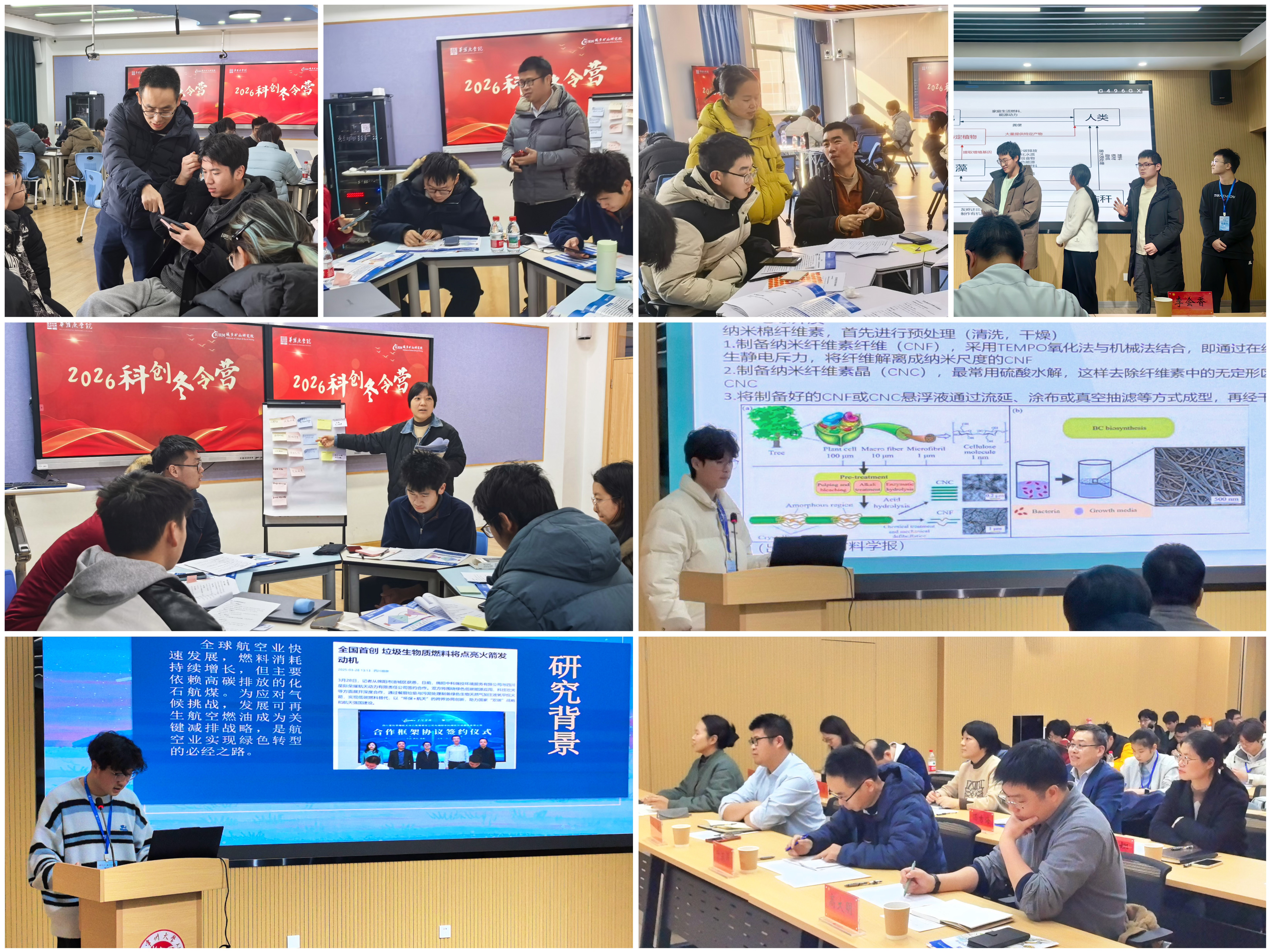作为本次冬令营的核心板块之一,“碳”索新路训练营在城乡矿山研究院大力支持下,成为“动漫花园 -研究院协同育人”机制的重要实践。该板块紧扣“双碳”目标,聚焦生物炼制、循环经济等国家战略领域,通过主旨报告、专题沙龙及综合实验等形式,引导学生深入理解生物质资源转化的技术路径与高值化应用场景。在设计思维工作坊与创新设计大赛中,同学们跨校组队、互相启发,围绕废弃塑料分级热解制氢、农林废弃物制备淀粉、藻类生物质高值转化、基于纤维素的超级电容器开发等8个方向开展方案设计与探究,在模拟真实科研流程中提升了解决复杂工程问题的能力。