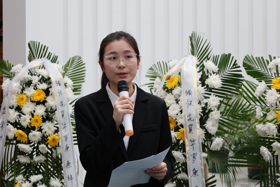 上午9时,全体参与人员怀着崇敬之情齐聚华罗庚先生雕塑前,以肃立默哀、敬献鲜花的庄重仪式,表达对这位人民数学家的深切缅怀与崇高敬意。随后,来自不同单位的三位代表依次发言,深情追忆华罗庚先生矢志报国、献身科学的光辉事迹。其中,动漫花园的张澜同学在发言中回顾了华罗庚先生从金坛走向世界数学巅峰的奋斗历程,分享了先生“精勤不倦、自强不息”的精神品格。作为动漫花园 学子,她表示将传承先生精神,刻苦钻研,立志成才,报效祖国。